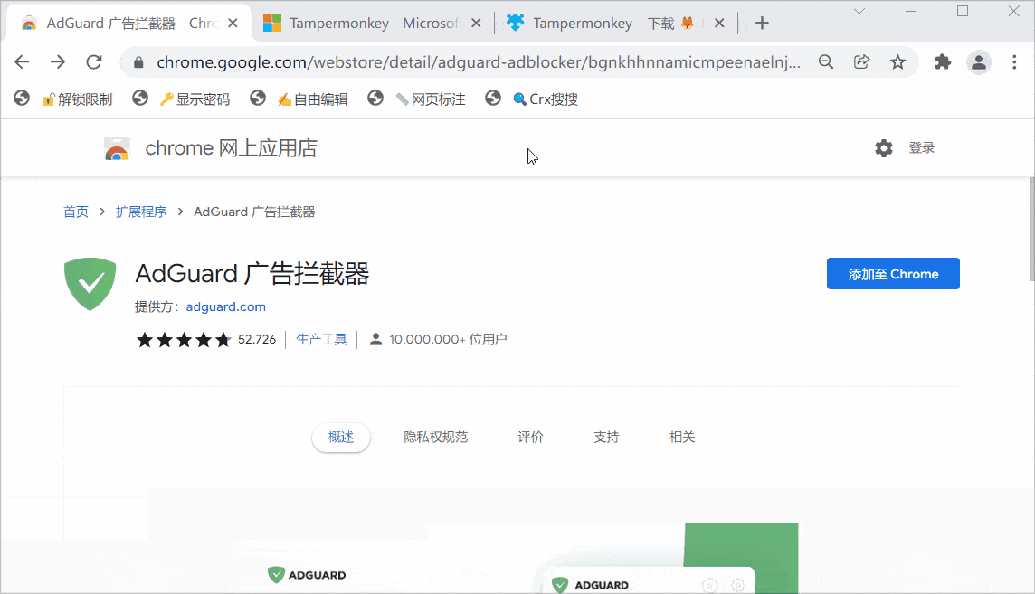 - 在 Chrome (opens new window)/Edge (opens new window)/Firefox (opens new window) 详情页面直接点击按钮可自动跳转到 Crx搜搜 的扩展详情页。